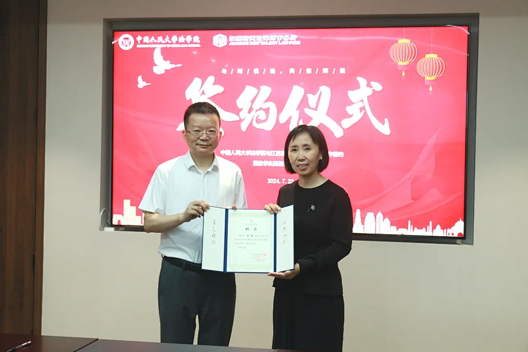 2024年7月23日下午,中国人民大学法学院与江苏新天伦律师事务所合作签约暨教学实践基地挂牌仪式在新天伦律所举行。
