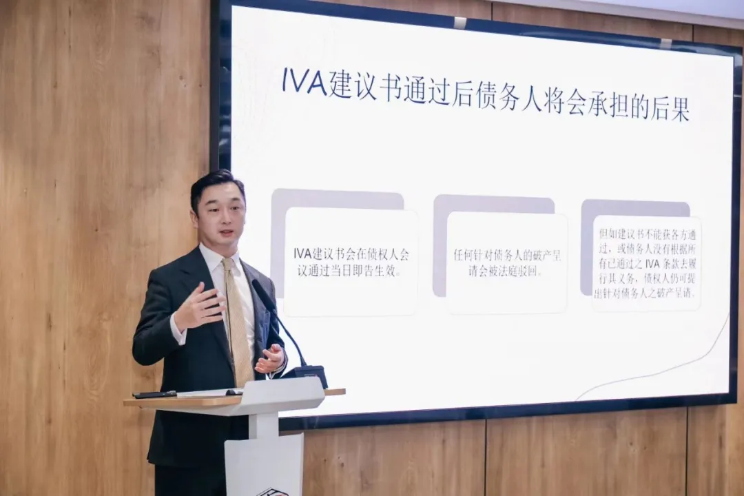 论坛嘉宾倪滢大律师(中国香港)就香港地区个人破产制度的沿革、司法现状以及对内地个人破产立法、司法探索的借鉴意义,向与会嘉宾进行了深入分享,着重介绍了"自愿安排 Individual Voluntary Arrangement (IVA)"与"破产"两种处理方式的异同。