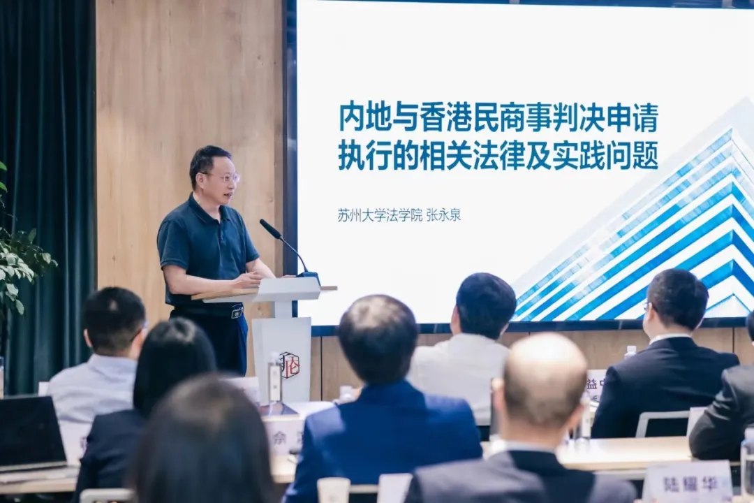 论坛嘉宾苏州大学王健法学院张永泉教授围绕《内地与香港法院相互认可和执行民商事案件判决的安排》施行后两地法律服务的机遇与挑战进行了精彩阐述,分析了目前中国内地民商事诉讼程序(涉外)实践中的难点与执行困境。