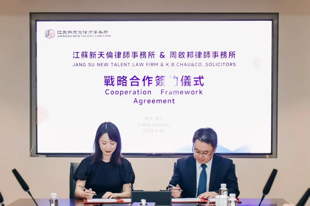 在论坛活动上,江苏新天伦律师事务所与香港周启邦律师事务所签订战略合作协议,双方将在共同助力国家涉外法治建设、搭建跨境(区)业务合作机制、分享法律专业服务经验、加强文化交流共建和青年人才培养等方面展开合作。