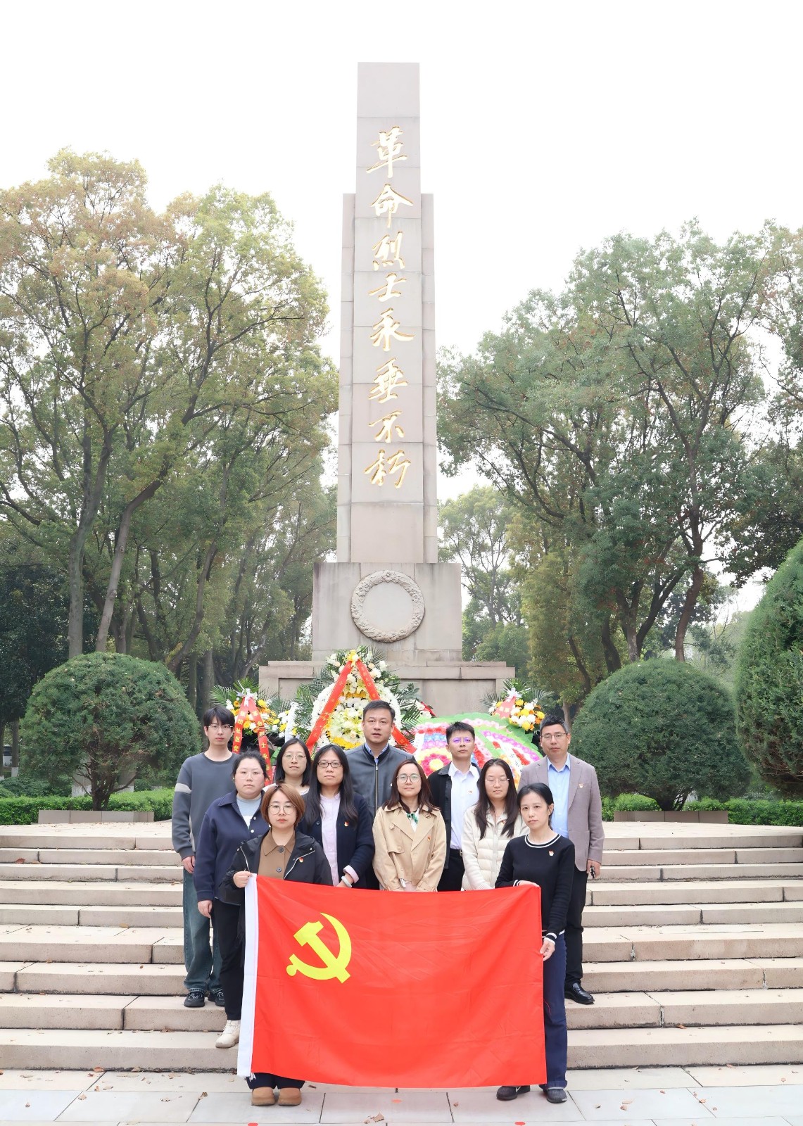 在庄严肃穆的革命烈士纪念碑前,全体人员整齐列队、神情肃穆,向为民族独立、人民解放和国家富强英勇献身的革命先烈致以崇高敬意。伴随着低沉深情的旋律,党员代表缓步上前,向烈士纪念碑敬献花篮,仔细整理缎带,寄托深切追思与无限敬仰。全体人员肃立默哀,三鞠躬致敬,在静默中追忆峥嵘岁月、缅怀英烈功绩,接受深刻的红色洗礼与精神淬炼。祭扫仪式后,大家缓步绕行烈士墓区、瞻仰英名墙,深情缅怀革命先烈的崇高信仰与奉献精神。